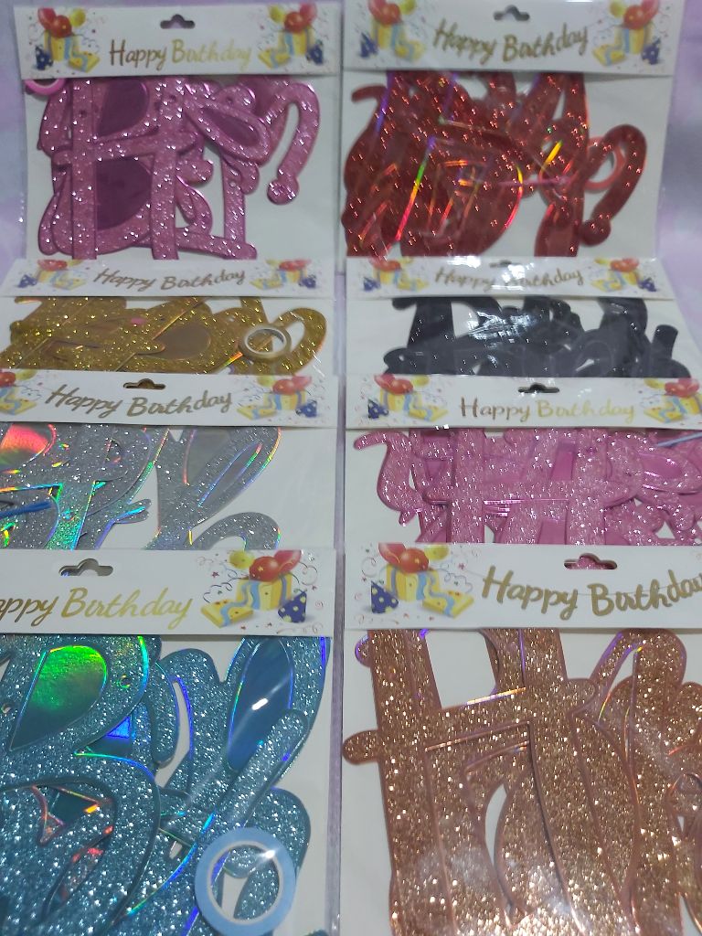 Ces magnifiques décorations Joyeux Anniversaire sont parfaites pour ajouter une touche de paillettes et de glamour à toute fête d’anniversaire. Disponibles en plusieurs couleurs éclatantes, ces articles peuvent servir de bannières (drapeaux) ou de grands toppers de gâteau/décorations murales. Chaque pièce est fabriquée avec du carton pailleté de haute qualité, assurant un maximum d’éclat sous les lumières de fête.