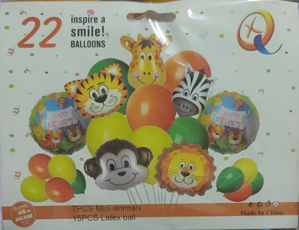 Inspirez un sourire avec cet ensemble de 22 ballons, comprenant 7 adorables ballons en aluminium d’animaux et 15 ballons en latex colorés, parfaits pour une fête d’anniversaire sur le thème safari.
