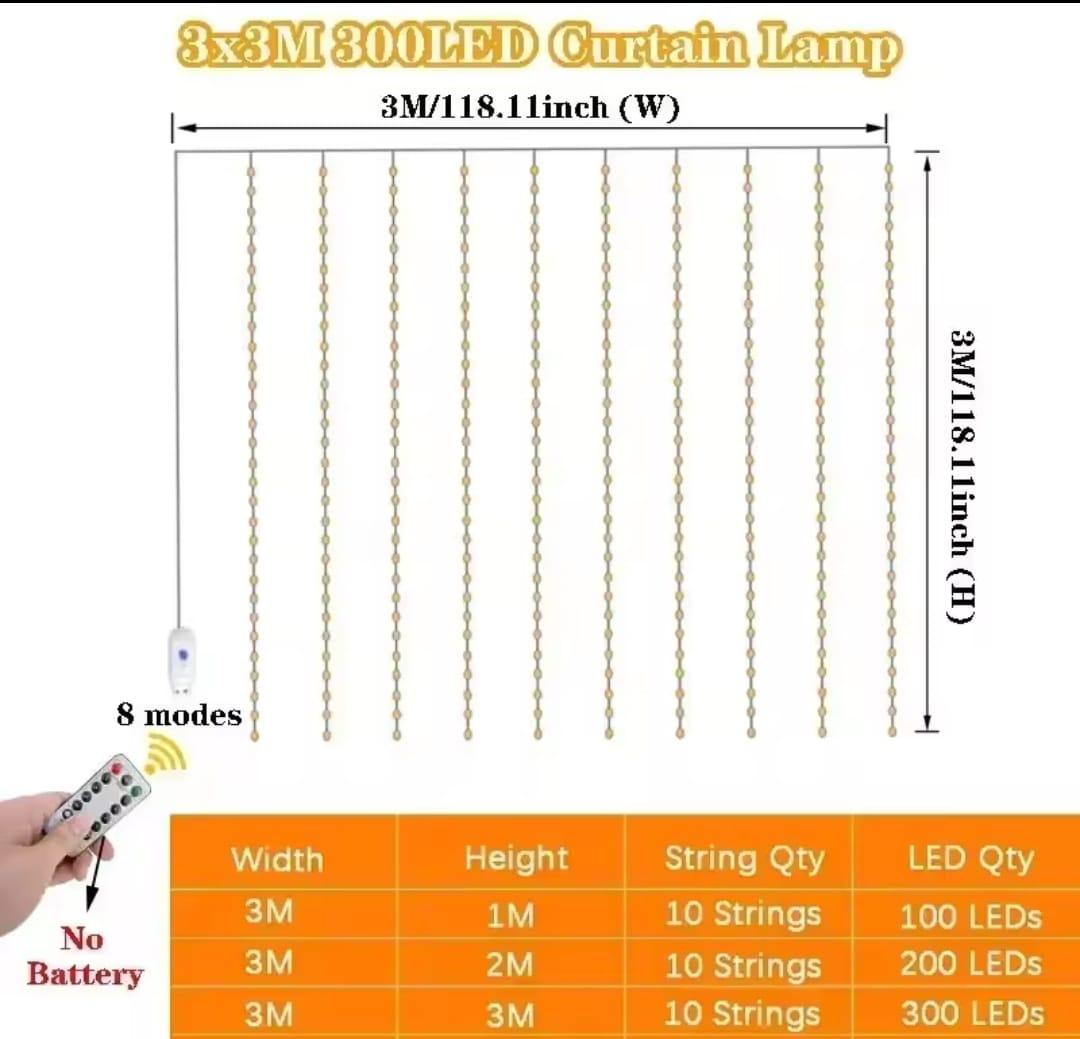| Size | 3M x 3M (300 LEDs), 3M x 2M (200 LEDs), 3M x 1M (100 LEDs) |