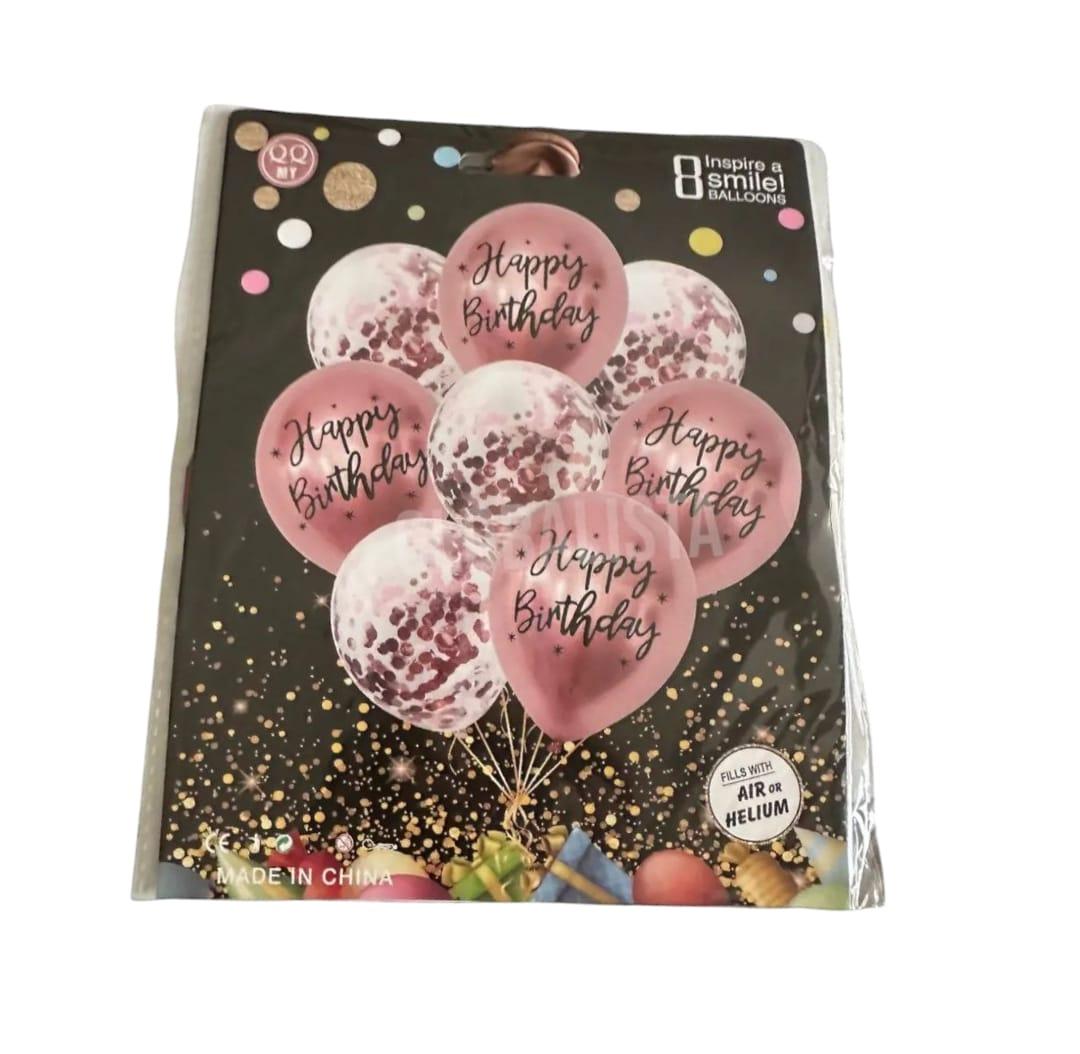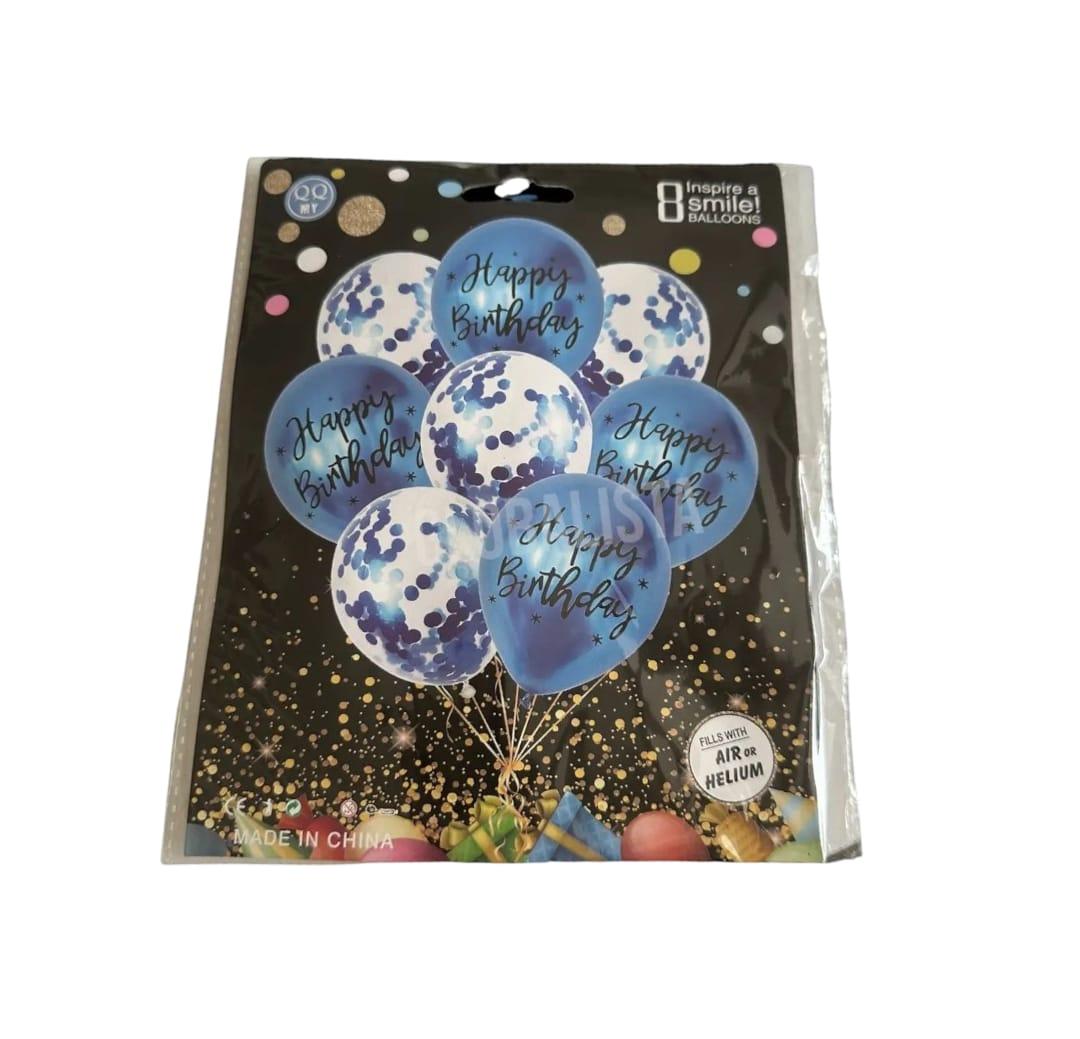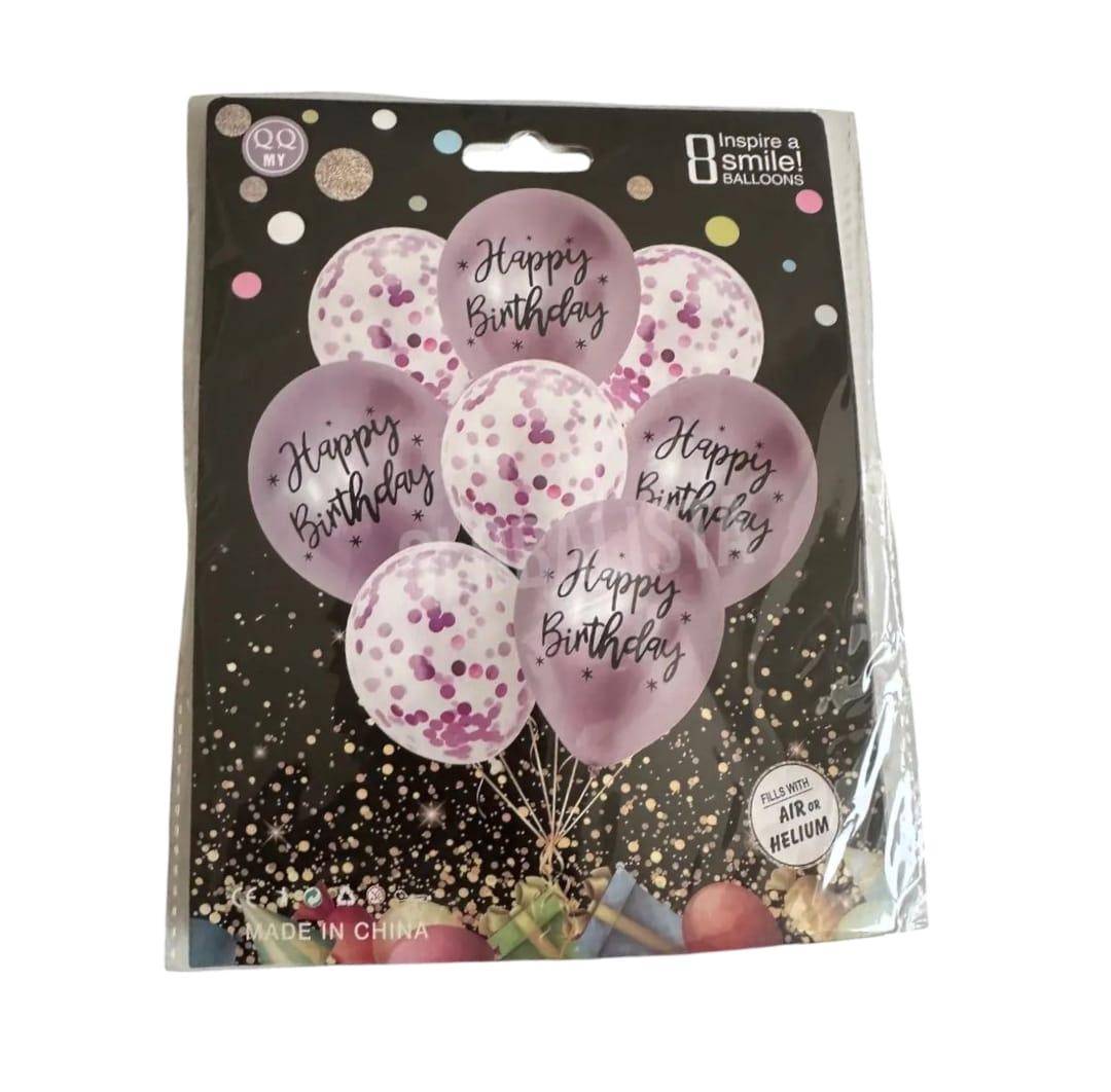 Un pack éclatant de 8 ballons ‘Joyeux Anniversaire’, comprenant des designs unis et remplis de confettis, parfait pour toute célébration d’anniversaire.