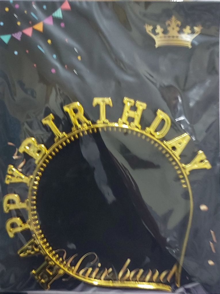 Serre-tête ‘Joyeux Anniversaire’ étincelant disponible en finition métallique Or ou Argent. L’accessoire de fête parfait.